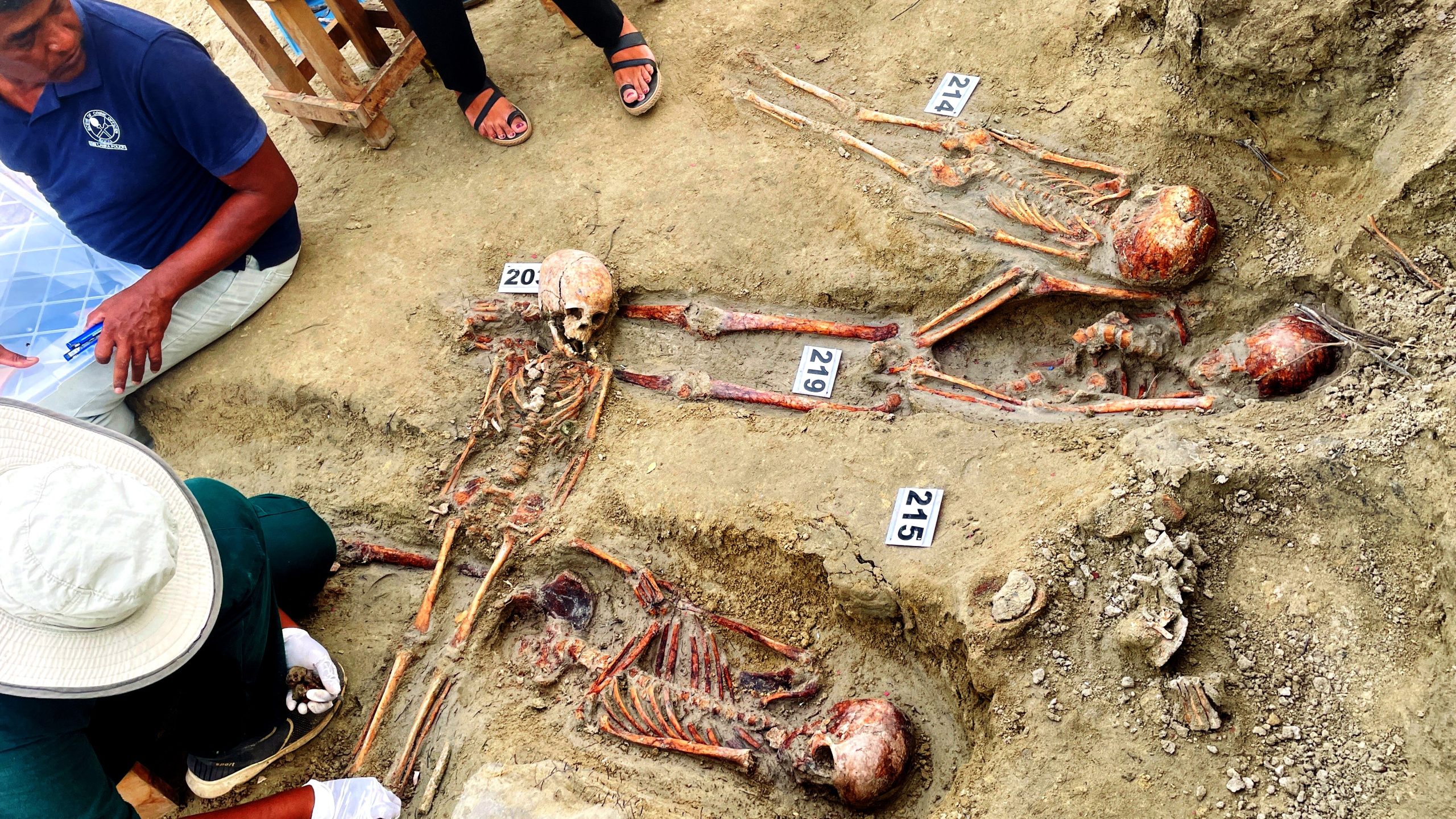 செம்மணி மனித புதைகுழியில் இரண்டு பெரிய என்புக்கூட்டு தொகுகளின் முழங்கால் பகுதிக்கு குறுக்காக ஒப்பிட்டளவில் சிறிய எலும்புக்கூட்டு தொகுதியும் மற்றுமொரு என்புக்கூட்டின் மண்டையோடு ஒரு என்புக்கூட்டின் தோள்பட்டையுடன் தொடுகையுற்றவாறும் அடையாளம் காணப்பட்டுள்ளது.இந்த நான்கு என்புக்கூட்டு தொகுதிகளையும் சுத்தம் செய்யும் பணிகள் முன்னெடுக்கப்பட்டுள்ள நிலையில், அவை நாளைய தினம் முற்றாக அகழ்ந்து எடுக்கப்படும் எதிர்பார்க்கப்படுகிறது.இவ்வாறாக கடந்த நாட்களில் மேற்கொள்ளப்பட்ட அகழ்வு பணிகளின் போதும், வெவ்வேறு சந்தர்ப்பங்களில் மூன்று தடவைகள் ஒன்றன் மேல் ஒன்றாக என்புக்கூடுகள் மீட்கப்பட்டுள்ள நிலையில், இன்றைய தினம் இந்த என்புக்கூடுகள் அடையாளம் காணப்பட்டுள்ளமை குறிப்பிடத்தக்கது.