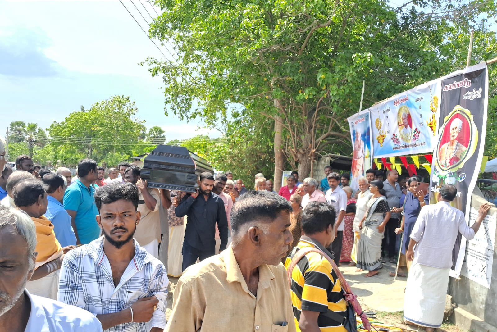 பிரிகேடியர் விதுசாவின் தந்தையின் இறுதி கிரியைகள் ஆதீரா Monday, October 13, 2025 யாழ்ப்பாணம் தமிழீழ விடுதலைப்புலிகளின் மாலதி படையணியின் சிறப்புத்தளபதி பிரிகேடியர் விதுசா மற்றும் மாவீரன் விதுசான் ஆகியோரின் தந்தை கணபதிப்பிள்ளை கந்தையாவின் (கப்பூது ஐயா) இறுதிச்சடங்கு இன்றைய தினம் திங்கட்கிழமை கரவெட்டியில் நடைபெற்றது.இறுதி கிரியையின் போது, முன்னாள் போராளிகள், அரசியல் பிரமுகர்கள், பொதுமக்கள் என பலர் கலந்து கொண்டு இறுதி அஞ்சலி செலுத்தினர். Related Posts யாழ்ப்பாணம் NextYou are viewing Most Recent Post Post a Comment