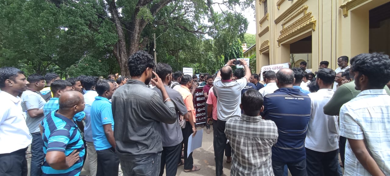 ஆளணி வெற்றிடங்களை நிரப்புமாறு கோரி யாழ்.பல்கலைக்கழக ஊழியர் சங்கத்தினர் இன்றைய தினம் செவ்வாய்க்கிழமை ஆர்ப்பாட்டத்தில் ஈடுபட்டனர்.யாழ்ப்பாண பல்கலைக்கழகத்தில் கல்விசாரா ஊழியர்களின் பிரச்சினைகளுக்கும் மாணவர் நலன்சார்ந்த பிரச்சினைகளுக்கும் பல்கலைக்கழக நிர்வாகம் தீர்வு காணவேண்டும் என கோரியே இப்போராட்டம் இடம்பெற்றது. யாழ்ப்பாண பல்கலைக்கழகத்தில் ஏற்றுக்கொள்ளப்பட்ட கல்விசாரா பணியாளர் வெற்றிடங்கள் 355 காணப்படுகின்றபொழுதிலும் 117 வெற்றிடங்களே நிர்வாகத்தினால் கோரப்பட்டுள்ளது. அத்துடன் பல்கலைக்கழக சுற்றுநிருபத்திற்கு முரணாக தனியார் நிறுவனங்களூடாகவும் ஊழியர்கள உள்வாங்கப்பட்டு சேவை ஒப்பந்த்த்தினூடாக நியமனம. செய்யப்படுவது தவறு எனவும் சுட்டிக்காட்டி போராட்டத்தில் ஈடுபட்டனர். ஏற்கனவே இந்த முறைகேடு தொடர்பாக பல்கலைக்கழக மானியங்கள் ஆணைக்குழுவிற்கும் பல்கலைக்கழக பேரவைக்கும் எழுத்துமூலம் அறிவிக்கப்பட்டும் அவை புறக்கணிக்கப்பட்டதால் இன்று போராட்டத்தில் இறங்கியுள்ளதாக போராட்டக்காரர்கள் தெரிவித்தனர்.