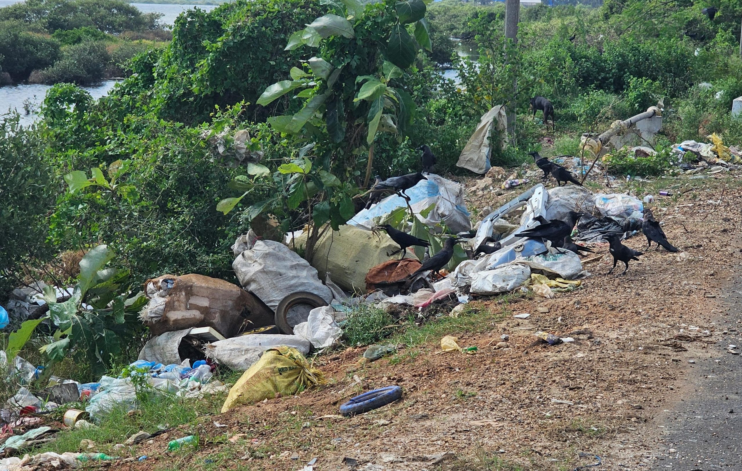 யாழ்ப்பாணம் – காக்கைதீவு சந்தைக்கு அண்மித்த பகுதியில் வீதியோரத்தில் மாட்டின் தலை, விலங்குக் கழிவுகள் மற்றும் பல்வேறு கழிவுப் பொருட்கள் என்பன கொட்டப்பட்டுள்ளன. இதனால் அந்தப் பகுதியில் துர்நாற்றம் வீசுவதுடன், சுகாதார சீர்கேடு ஏற்பட்டுள்ளது. இறைச்சிக்கு வெட்டப்பட்ட மாட்டின் தலையே இவ்வாறு வீசப்பட்டிருக்கலாம் என சந்தேகிக்கப்படுகிறது. குறித்த வீதியோரத்தில் தொடர்ச்சியாக பல்வேறு விதமான கழிவுகளை கொட்டுவதால் அங்குள்ள கட்டாக்காலி நாய்கள், பறவைகள் என்பன அந்த கழிவுகளை தூக்கி சென்று வெவ்வேறு இடங்களில் பரப்புகின்றன. இவ்வாறு கொட்டப்படுகின்ற கழிவுப் பொருட்களை உண்பதற்கு விலங்குகள் வீதியின் குறுக்கும் மறுக்குமாக செல்வதால் உயிராபத்துகள் கூட ஏற்படுகின்றன. அண்மையில், யாழ். எரிபொருள் நிலையத்தில் கடமை புரியும் இளைஞர் ஒருவரும் குறித்த வீதியில் நாயுடன் மோதி விபத்துக்குள்ளாகி உயிரிழந்ததாக செய்திகள் வெளியாகி இருந்தன. வீடுகளிலும், வர்த்தக நிலையங்களிலும் இருக்கின்ற சாதாரண கழிவுப் பொருட்களை பார்வையிட்டு அதற்கு எதிராக நடவடிக்கை எடுக்கின்ற பொது சுகாதார பரிசோதகர்கள் இவ்வாறு அபாயகரமான நிலைமை குறித்து கவனிக்காதது ஏன் என்ற கேள்வி எழுகின்றது. தொடர்ச்சியாக இடம்பெறும் இவ்வாறான சீர்கேடான செயற்பாடுகள் குறித்து யாழ். மாநகர சபையினர், மானிப்பாய் பிரதேச சபையினர் மற்றும் பொது சுகாதார வைத்திய அதிகாரி பணிமனை ஆகியன இது குறித்து நடவடிக்கை எடுக்க வேண்டும் என்று கோரிக்கை முன்வைக்கப்படுகிறது.