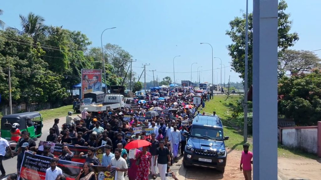 இதன்போது கல்லடி பாலத்திலிருந்து பல்வேறு கோசங்களுடன் பேரணியானது நினைவு ஊர்தியுடன் பல்வேறு கோசங்களை எழுப்பியவாறு திருகோணமலை வீதியுடாக மட்டக்களப்பு நகர் நோக்கிசென்றபோது வெள்ளைப்பாலம் அருகில் பொலிஸாரினால் வீதி தடைகள் ஏற்படுத்தப்பட்டு போராட்டக்காரர்கள் மறிக்கப்பட்டு புதுப்பாலம் ஊடாக பேரணியானது செல்லுமாறு பணிக்கப்பட்டது.